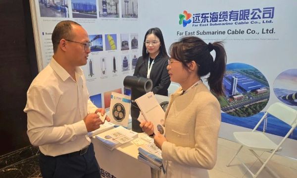 遠東海纜展臺吸引了海外專業人士的廣泛關注。現場咨詢者絡繹不絕,深入了解遠東海纜在產品性能、技術研發、成本控制方面的突出優勢,并就海上風電領域核心技術及行業趨勢展開深度交流。參會嘉賓通過深入交流,對遠東海纜展現出的整體競爭力、創新研發實力以及高質量發展成果給予了高度評價。