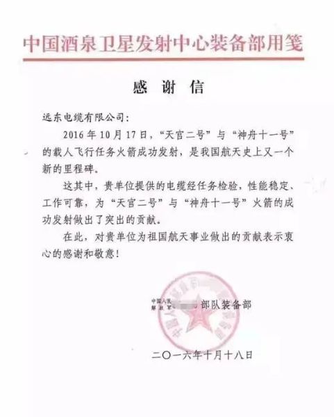 時間拉回七年前,遠東電纜收到過一封來自酒泉衛(wèi)星發(fā)射中心的感謝信,記錄了“緊急時刻”下遠東電纜與中國航天的鏈接。2016年9月16日晚近12時,“神舟十一號”發(fā)射工作已經(jīng)進入調(diào)試階段,遠東電纜突然接到來自酒泉衛(wèi)星發(fā)射中心的電話,中心表示希望公司能在三天內(nèi),趕制一批航空用高端電纜產(chǎn)品并送至酒泉,助力航天基地建設(shè)及“神州十一號”發(fā)射?!肮窘拥饺蝿?wù)快速反應(yīng),立即停下手頭所有訂單的生產(chǎn),全力趕工,最終用72小時的“火箭速度”不辱使命交上滿意答卷?!边h東電纜相關(guān)負責(zé)人表示。