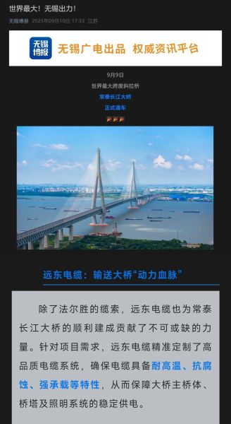 官媒點(diǎn)贊!遠(yuǎn)東助力世界最大跨度斜拉橋——常泰長江大橋通車!